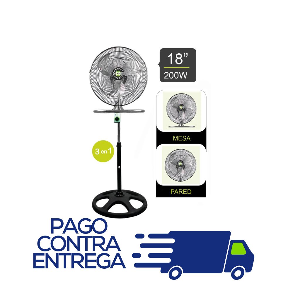VENTILADOR 3 EN 1 BOSSKO 200 WATTS – 3 ASPAS METAL 18″ PULGADAS